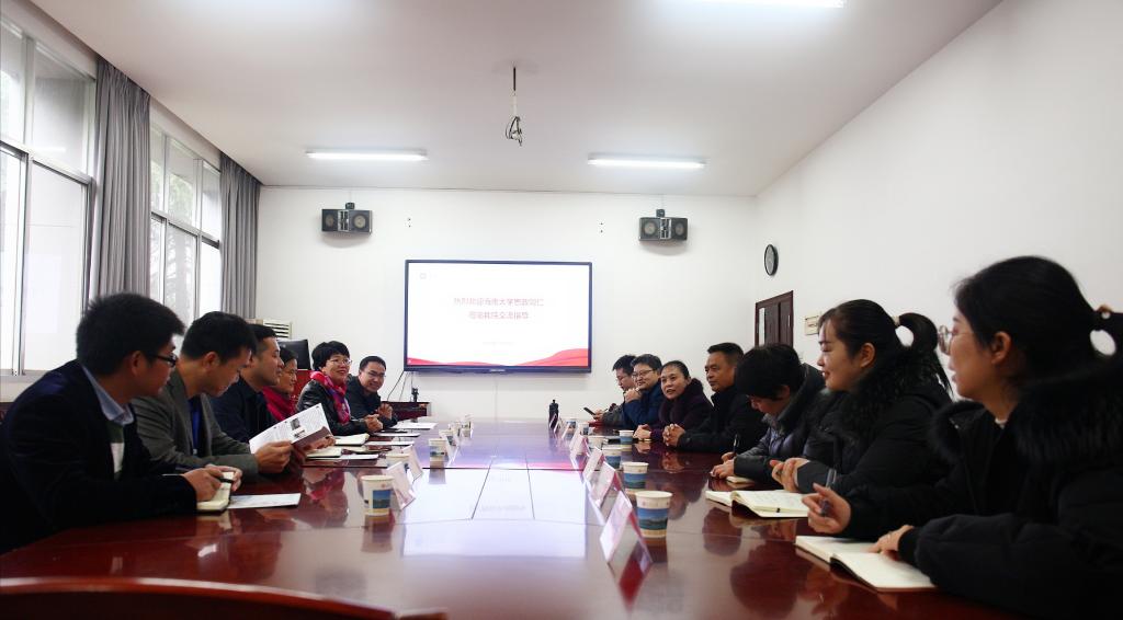 为进一步加强高校之间的交流,切实承担立德树人重任,不断提升员工思政教育管理工作水平,12月4日上午,正在公司参加“构建一流老员工思政实践资源”交流研讨班学习的海南大学部分学院领导等到威廉williamhill体育文学与新闻传播学院进行访问交流。在参观公司后,双方于文法楼230举行了座谈会。海南大学人文传播公司党委副书记罗邻球、管理公司党委副书记易振、计算机与网络空间安全公司党委副书记黄小欧、生物医学工程学院副经理张云竹、政治与公共管理学院学工办负责人左世宝、热带作物学院学工办负责人颜平,文新公司党委书记罗军飞、党委副书记邓栗、副经理范明献、陈国雄、纪海龙以及辅导员、员工代表等参加了座谈交流。